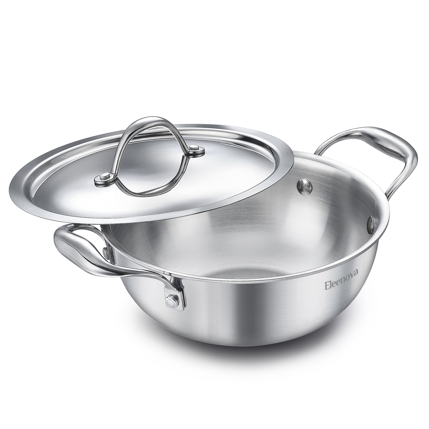Eleenova Triply Stainless Steel Kadai/Kadhai with Lid, 2.75 Litres, 22cm/8.6 Inch, 1.31Kg, ISI Certified with Product Lifetime Warranty, Durable 3-Layer Body, 100% Toxin-Free & No Chemical Coating