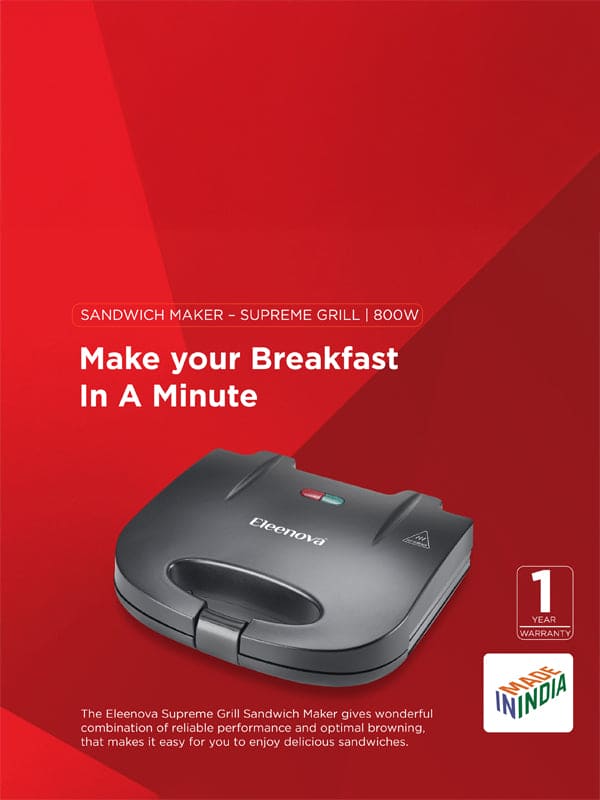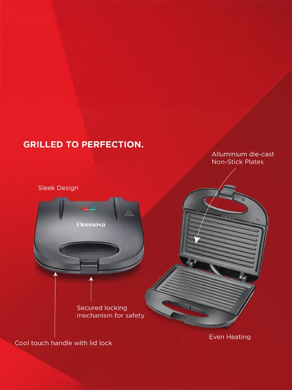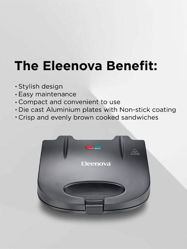 Experience the ease of crafting healthy and delicious sandwiches with the Eleenova Sandwich Maker. Its non-stick plates require minimal oil, ensuring a healthier option for your meals. Elevate your kitchen with this convenient and stylish appliance. Save time with quick and easy sandwich preparation, using your favourite ingredients for a wholesome breakfast or snack. The Eleenova Sandwich Maker is your go-to solution for satisfying sandwich cravings with flair and convenience